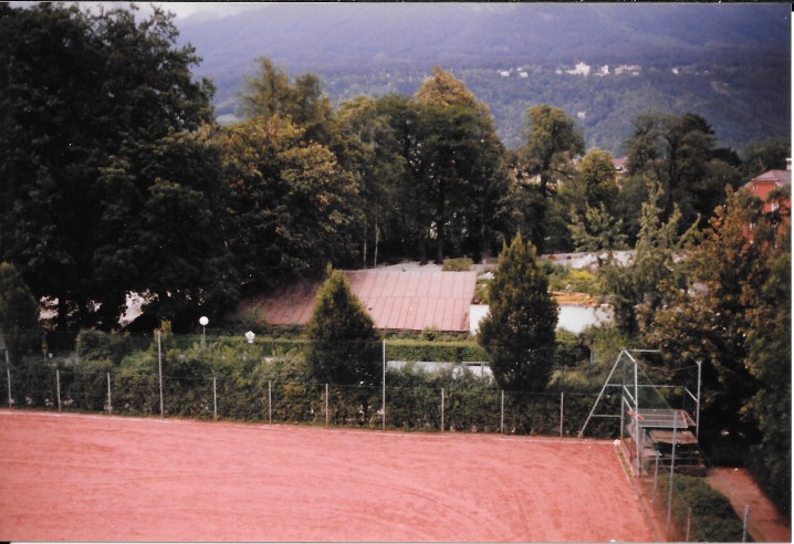 Das Aussenlager der Kohlenhandlung Geiger befand sich am Ende des Furterzaunweges – links ist der östliche Zugang zum Rapoldipark zu sehen mit einem Schotterbelag als Radweg; Aufnahme August 1993.