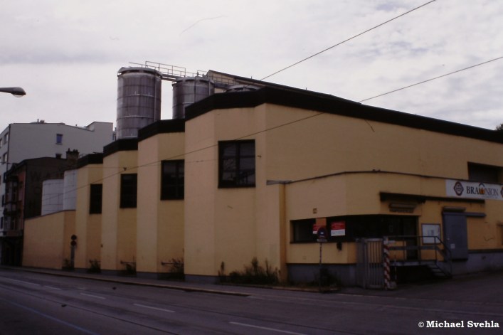 Das Bürgerbräu am Beginn der Ing.-Etzel-Straße – wurde frisches Bier gebraut, dann konnte man den Geruch in der nächsten Umgebung besonders gut riechen. Heute dominiert an dieser Stelle der „Bürgergarten“; Aufnahme: August 2004.