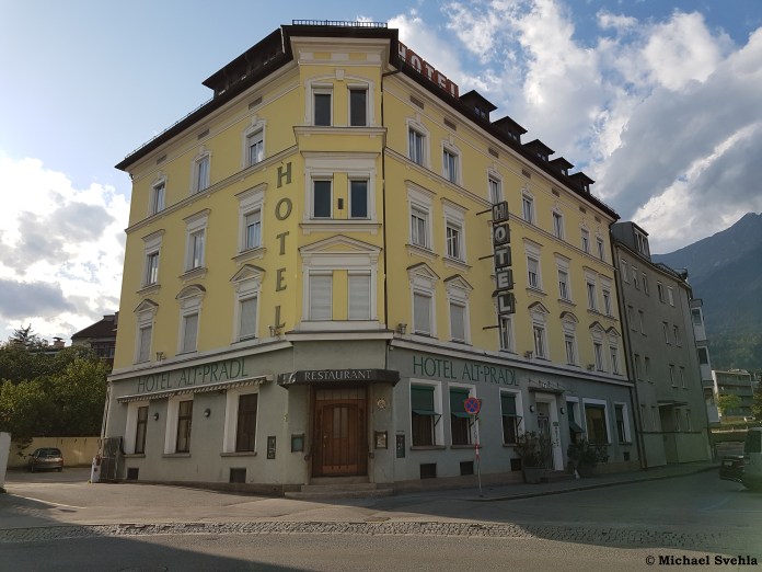Das ehemalige Hotel-Gasthaus „Altpradl“ an der Pradler Straße zwei Wochen vor Beginn der großen Umbauarbeiten; Aufnahme: September 2019.