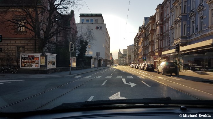 … sowie die Salurner Straße an einem ganz normalen Wochentag um 17.15 Uhr, also eigentlich „beste“ Büroschlussuhrzeit. Jetzt, im Juni schon wieder nicht mehr vorstellbar; beide Aufnahmen: März 2020.