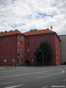 Die Aufnahme zeigt die Hausnummern Freisingstraße 7 +9 (rechts am Bildrand) nach der Wärmeisolierung (Aufnahme: Juli 2012):
