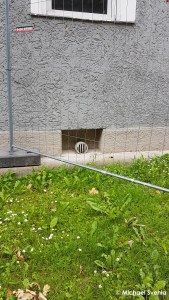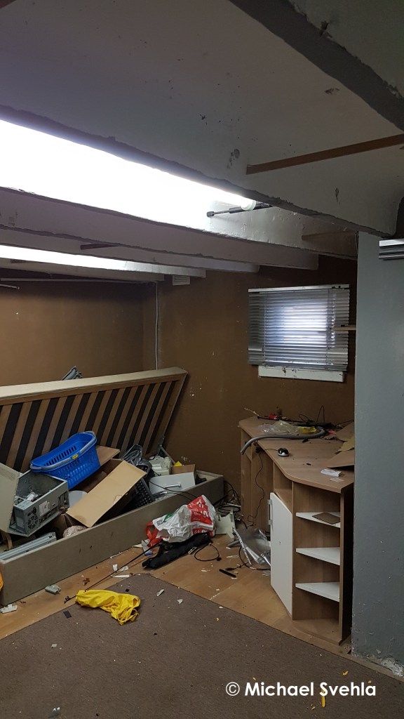 Der ehemalige Luftschutzkeller mit dem kleinen Fenster zur Straße hinaus. Die Decken waren massiv, was gemeinsam mit der Raumhöhe und der Kleinheit des Raumes mit Sicherheit zu einer beengten Atmosphäre während eines Fliegeralarms geführt hat.